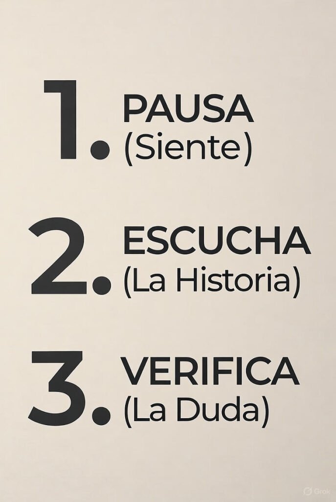 - VERIFICA (La Duda): Toma esa frase y hazte una sola pregunta: “¿Es esto 100% verdad absoluta?”